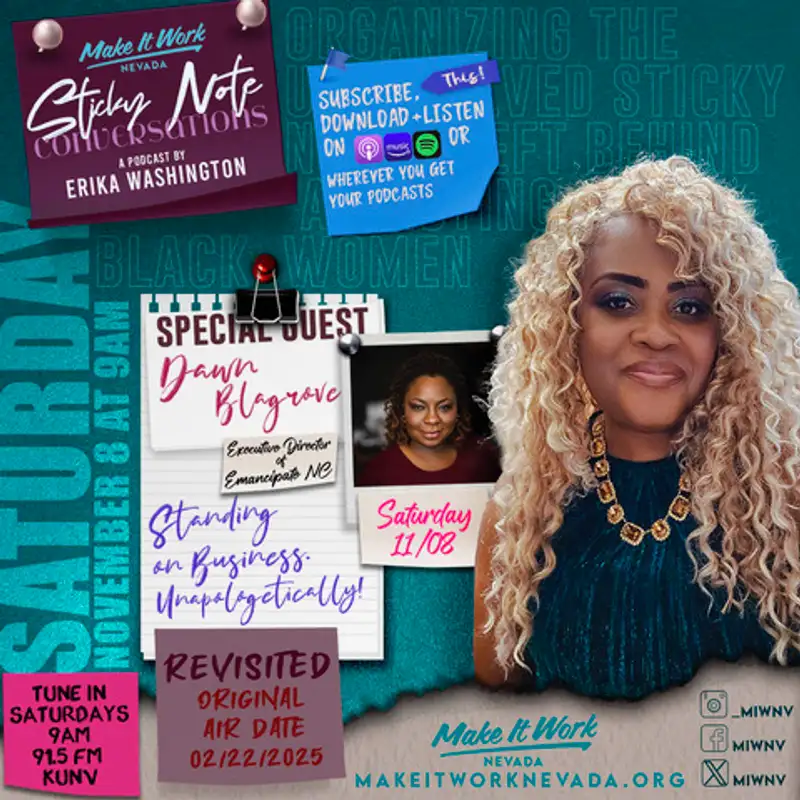 In this episode of 'Sticky Note Conversations,' host Erika Washington welcomes her special guest, Dawn Blake Grove, the executive director of Emancipate North Carolina...