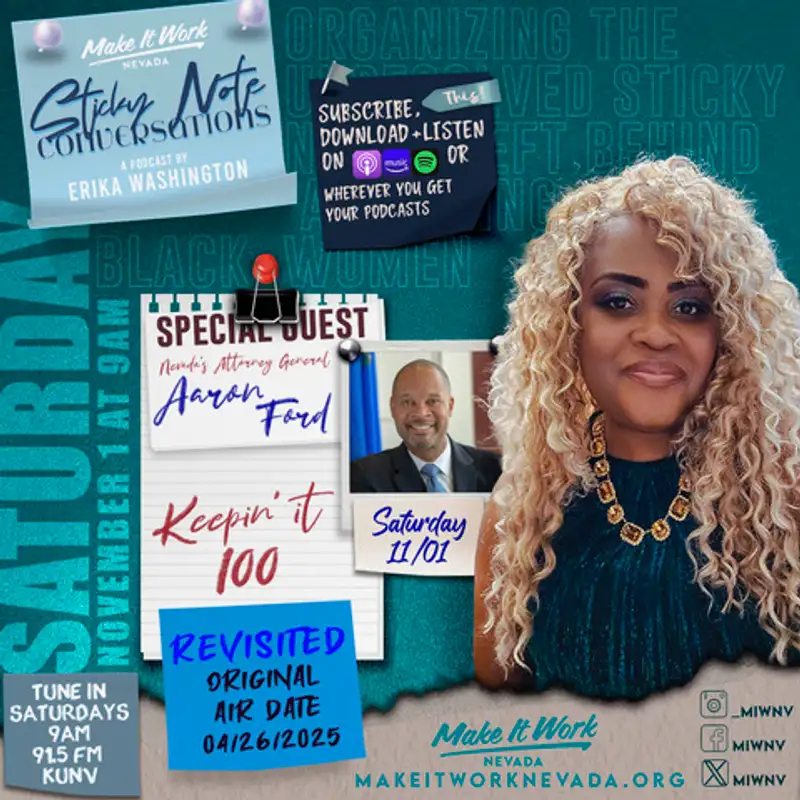 In this episode of 'Sticky Note Conversations with Erica Washington,' listen in as Erica replays an insightful discussion with Nevada Attorney General Aaron Ford. The ...